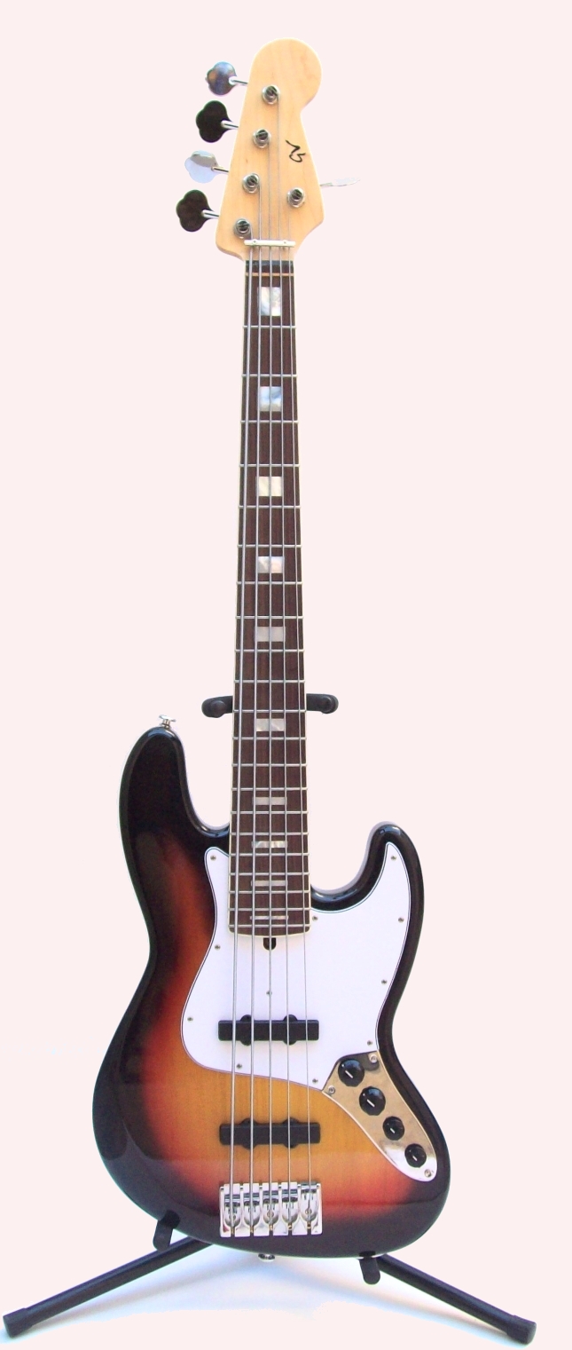 J534 – Sunburst with block inlays Specifications Alder Body Maple Neck Indian Rosewood Fretboard 60’s Pickup Positions Delano Pickups GV Custom 2 Band Onboard Preamp ETS Bridge Schaller Tuners 3 Tone Sunburst Finish Block Mother In Pearl Inlays