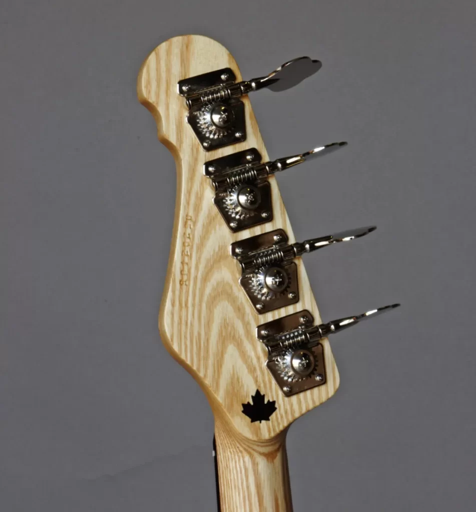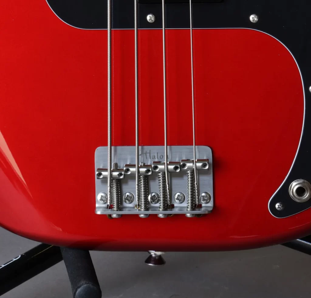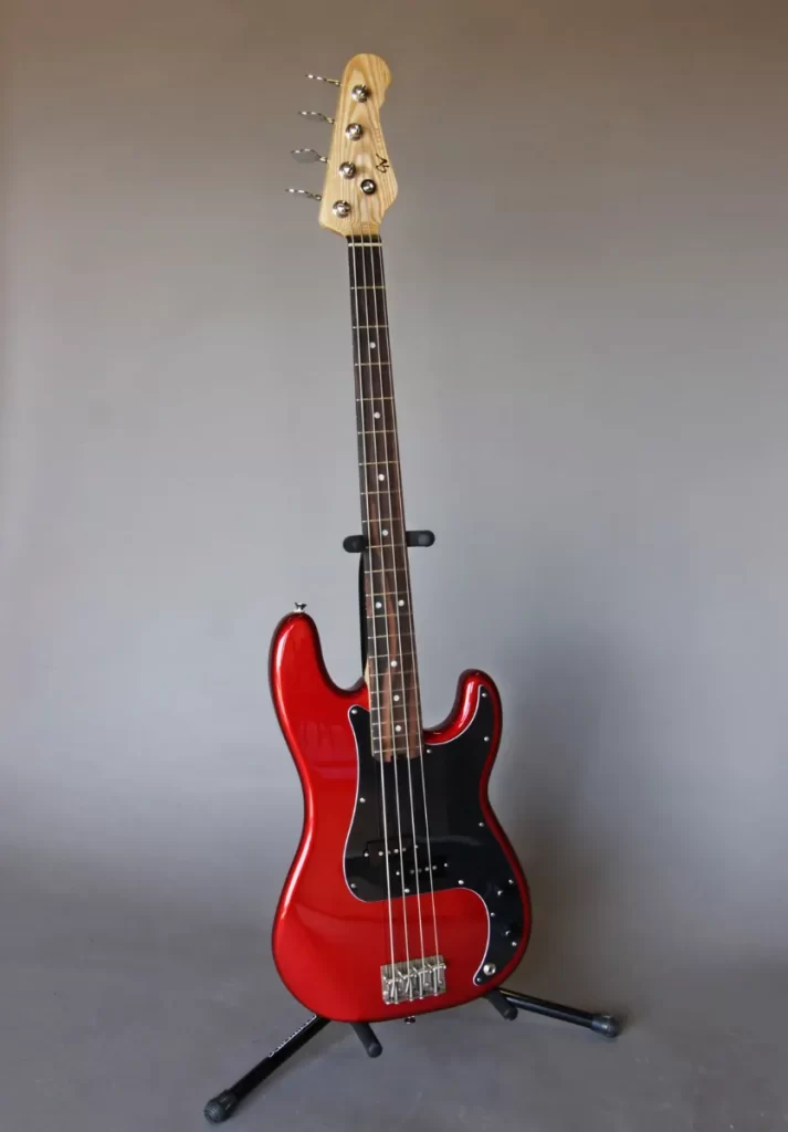 P434 – Red Specification Poplar Body Ash neck Macassar Ebony fretboard Dual action spoke wheel truss rod Halon Guitar Parts steel bridge 10″ radius TUSQ nut Passive wiring Pleked